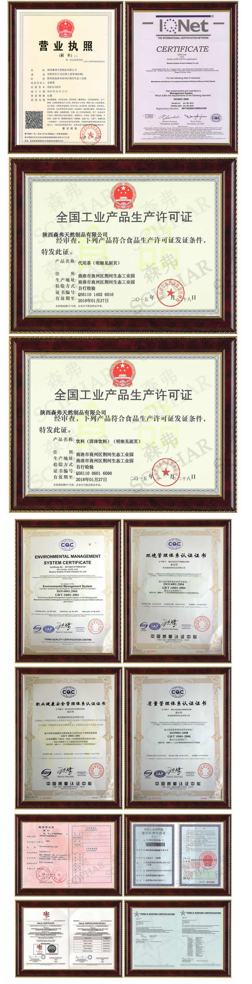 目前,公司已取得歐盟、美國有機(jī)認(rèn)證,食品SC生產(chǎn)許可認(rèn)證,通過HALAL、KOSHER產(chǎn)品認(rèn)證,ISO9001和ISO22000質(zhì)量管理體系認(rèn)證,及HACCP食品安全管理體系認(rèn)證,ISO14001環(huán)境管理體系認(rèn)證,獲得國家應(yīng)用發(fā)明專利100多項(xiàng)。